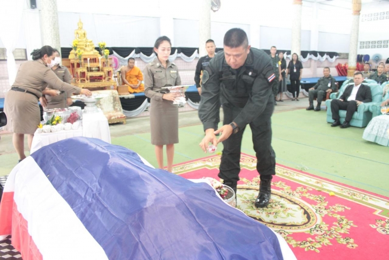 เมื่อวันที่ 7 มีนาคม 63 ที่ศาลาบำเพ็ญกุศลศพ วัดพุทธภูมิ พระอารามหลวง อ เมือง จ ยะลา พล ต ท รณศิลป์ ภู่สาระ ผบช ภ9 เป็นประธานในพิธีรดน้ำศพและวางพวงหรีด ส ต อ บุญจรัล สงทิพย์ ผบ หมู่งานป้องกันและปราบปราม สภ ศรีสาคร อ ศรีสาคร จ นราธิวาส เสียชีวิต พร้อมด้วย พล ท พรศักดิ์ พูลสวัสดิ์ แม่ทัพภาคที่ 4 พล ร ต สมเกียรติ ผลประยูร เลขาธิการศูนย์อำนวยการบริหารจังหวัดชายแดนภาคใต้ ศอ บต และข้าราชการทหาร ตำรวจ ประชาชน รวมทั้งครอบครัว เข้าร่วมในพิธี เพื่อแสดงความไว้อาลัย เป็นจำนวนมาก